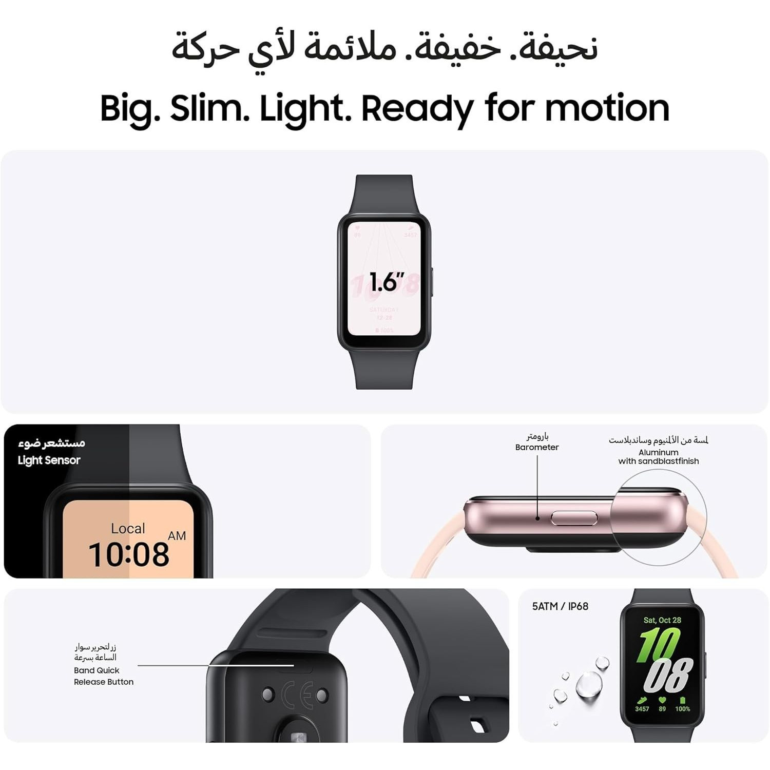 • SAMSUNG Galaxy FIT 3 [2025, 40MM] 1.6" AMOLED Display | IP68 Water Resistant | 14 Days Battery Life | 100+ Watchfaces | 100+ Exercise Modes | International Model